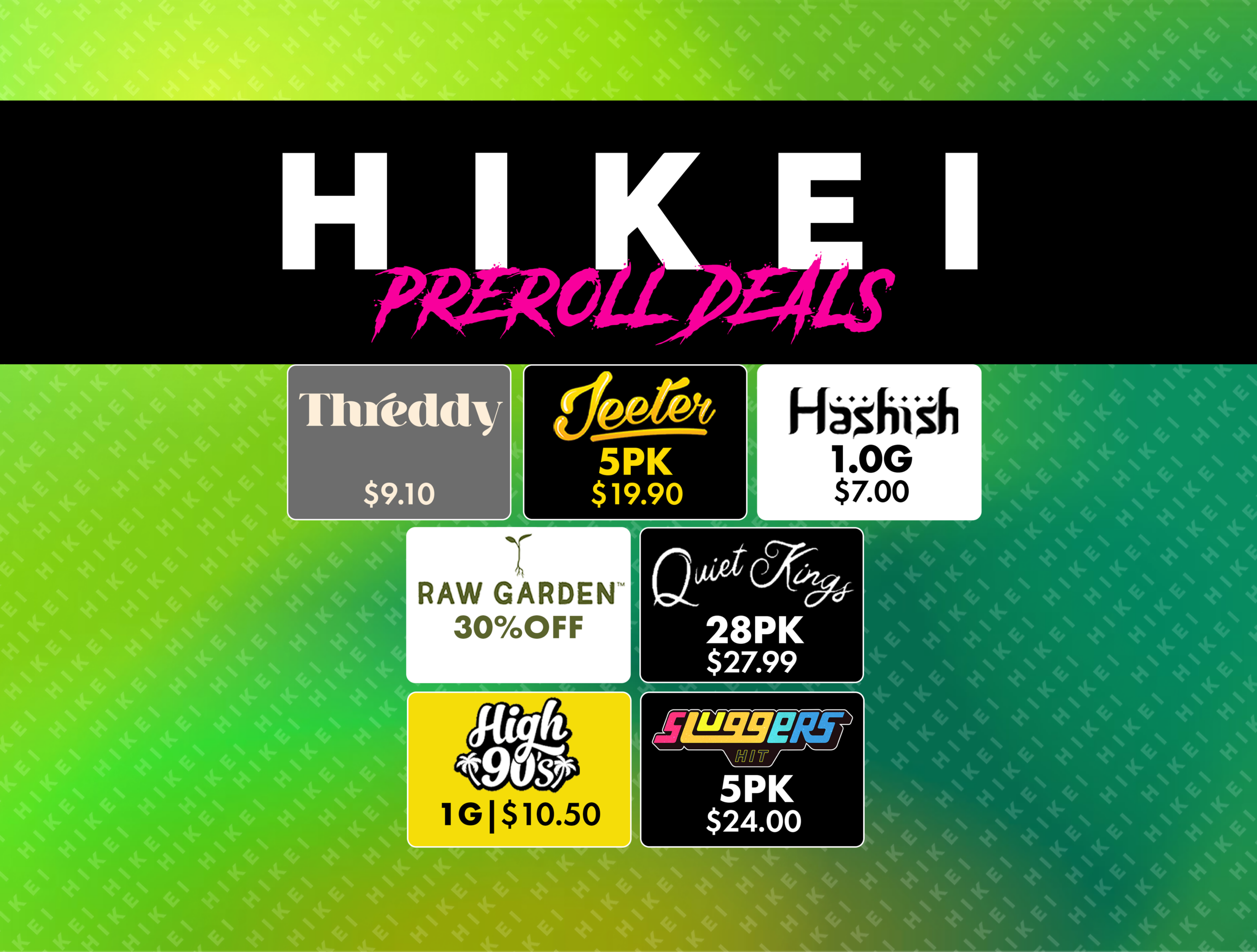 Our VIP texting program will allow you access to the best weekly deals Hikei has to offer!